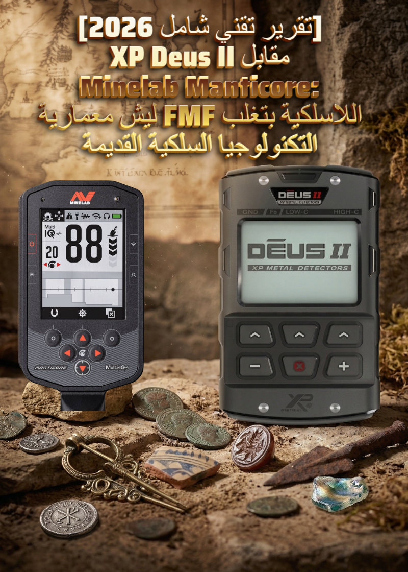 [تقرير تقني شامل 2026] XP Deus II مقابل Minelab Manticore: ليش معمارية FMF اللاسلكية بتغلب التكنولوجيا السلكية القديمة